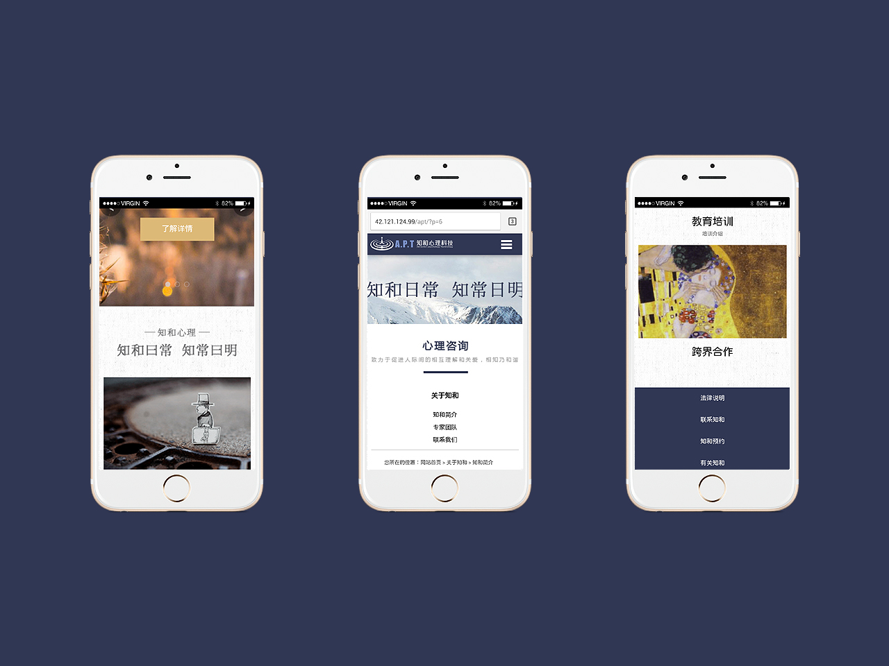 响应式企业官网设计开发 知和心理是一家包括心理咨询、教育培训和心理科技研发的多元心理健康服务企业,尤其在婚恋与性心理健康专业的独特优势,整合国内性医学、性心理学、性社会学界的专家资源,与医疗界建立“生物-心理-社会”模式的合作。